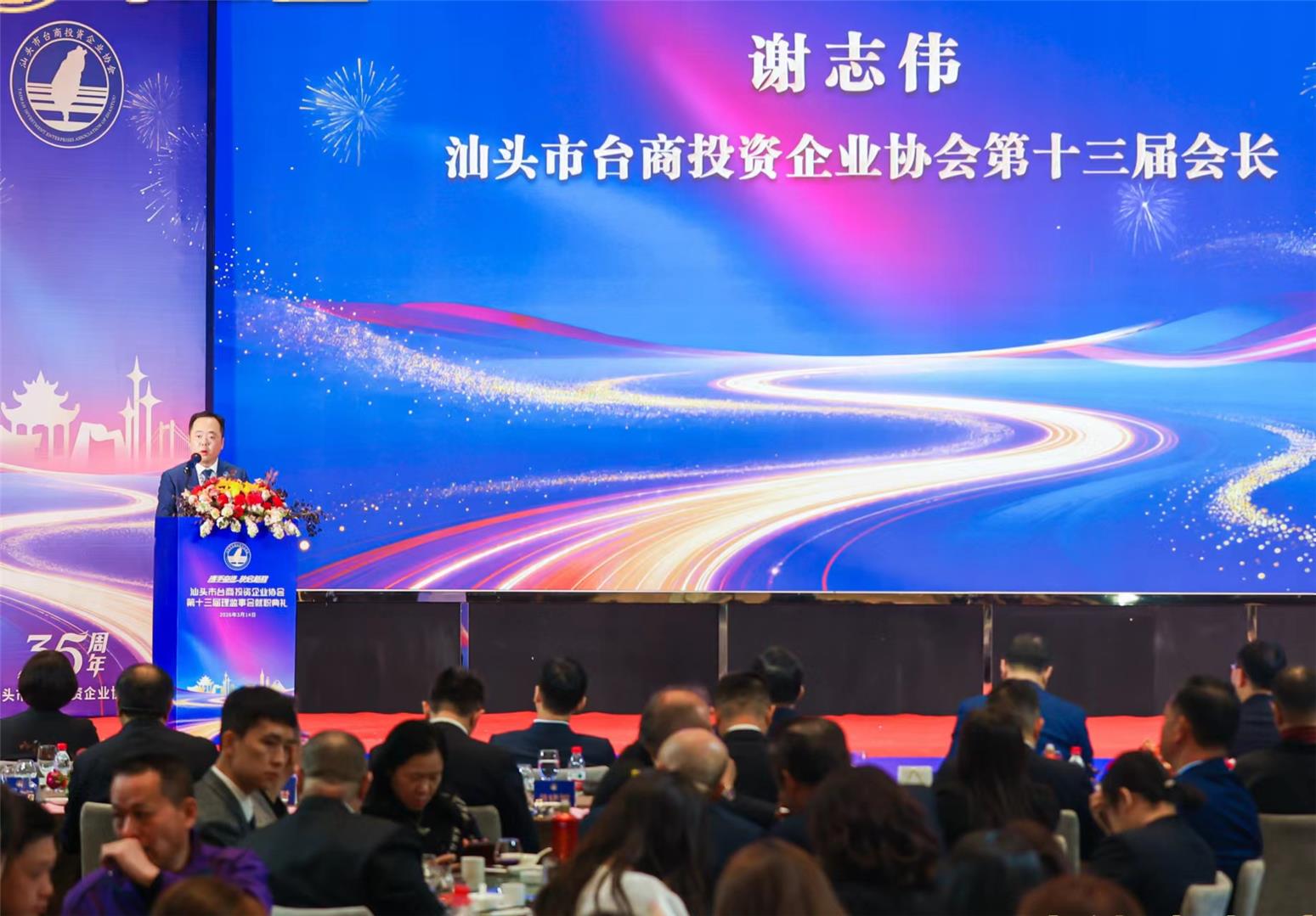 谢志伟在致辞中代表新一届理事会郑重承诺,将团结带领广大在汕台商台胞,坚定发展信心、抢抓历史机遇,积极融入制造业与服务业协同发展新赛道,全力投身汕头高质量发展实践。他表示,协会将深入贯彻“工业立市、产业强市”发展思路,坚持以贸促工、以工兴贸、工商并举,积极融入“三新两特一大”产业发展格局和向海图强发展之路,依托台商优势,主动参与汕头传统产业高端化、智能化、绿色化转型,助力台企转型升级、做大做强。